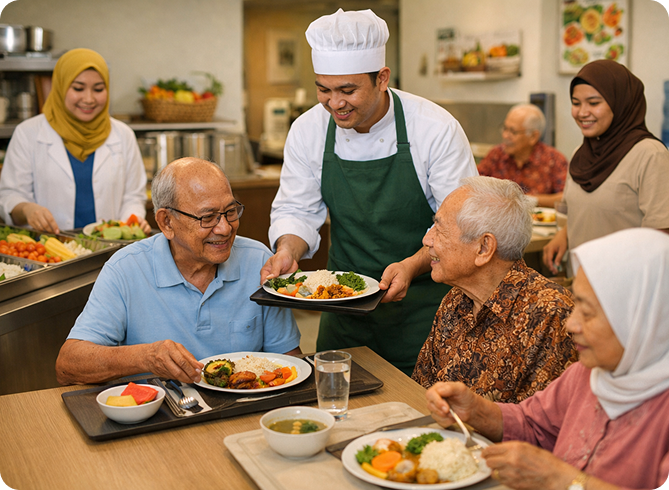 - Texture-modified, diabetic, low-sodium, renal or vegetarian menus as needed